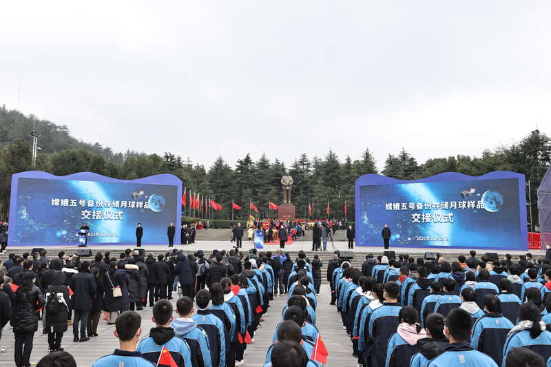 中国青年报客户端讯(中青报·中青网记者 邱晨辉)12月25日,嫦娥五号备份存储样品交接仪式在毛主席故乡湖南省韶山市举行,探月工程月球样品备份存储韶山基地正式启用。当天,国家航天局向湖南大学和韶山市分别颁发嫦娥五号月球样品备份证书,部分月球样品正式入藏韶山。