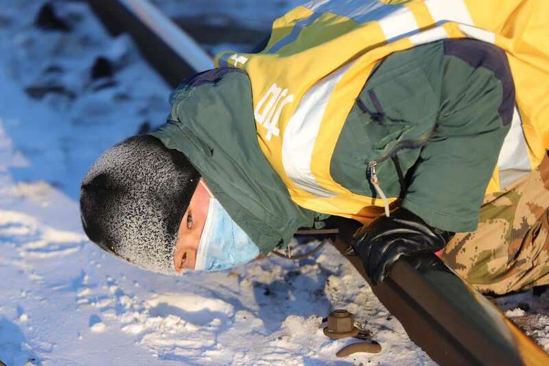 12月21日,13时20分至15时20分,加格达奇工务段漠河线路车间道岔维修工队7名职工对古莲站铁路道岔的冻害、几何尺寸超限等进行整修处理。由于今年秋季雨水较大,路基含水量大,近期气温降厉害,路基冻起导致线路高低、水平等线路几何尺寸的变化,形成病害,产生行车安全隐患。他们要在两小时内,通过捣固、垫板等方法,整修道岔冻害、限位器顶死等超限处所3处,保证设备运用状态良好,全面保障北极漠河,“电煤”运输和冰雪旅游黄金线的安全畅通。(中国日报黑龙江记者站)