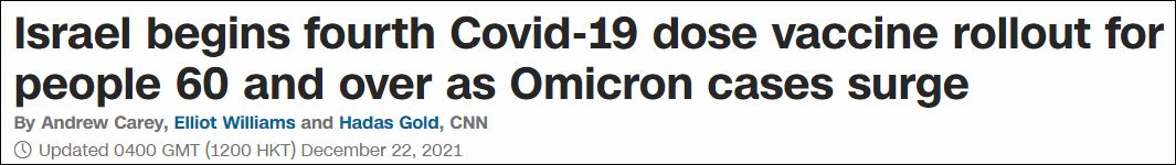 (观察者网讯)继全球第一个启动第三针新冠疫苗接种后,以色列又将第一个开展第四针接种运动。以色列政府放出风声的当天(21日),当地报告了首例“奥密克戎”感染者已知死亡病例。