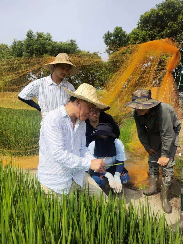 何祖华带领团队成员下田研究。中国科学院分子植物科学卓越创新中心供图