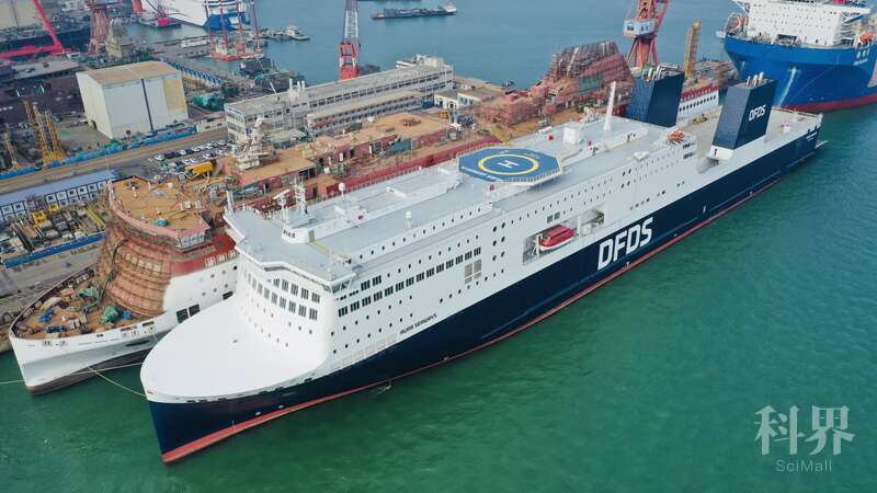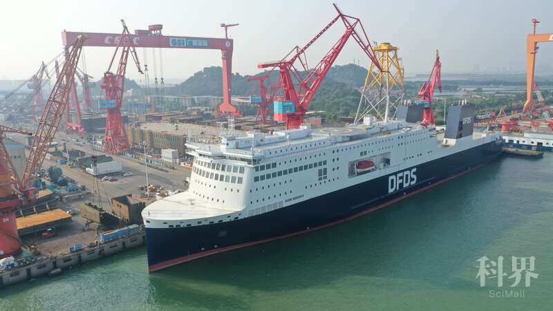 该豪华客滚船由中国船舶集团旗下广船国际为北欧最大的航运和物流公司——丹麦Det Forenede Dampskibs-Selskab(简称:DFDS)航运公司建造,客滚船内装材料国产化近乎100%。上周,广船国际为DFDS建造的这艘客滚船完成交接。