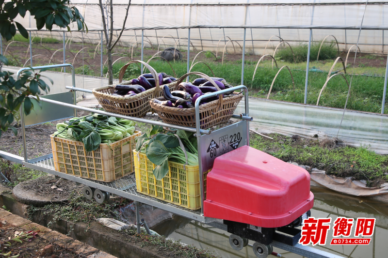 园内都是绿色无污染生产,除了大量使用有机肥,以减少化肥的使用外,就绿色防控,采用大棚防护网,减少农药的使用量,提高蔬菜的品质和质量。采访当天,一辆智能化的轨道运输车正在园内忙碌地作业运菜。易松彬表示,轨道运输车大大节约了人工收菜的时间,抢收秋延后的辣椒、茄子、黄瓜和今年新鲜的条根白已经大量上市了,他们正在培育明年的辣椒、茄子苗子,今年蔬菜又迎来了一个丰收年。