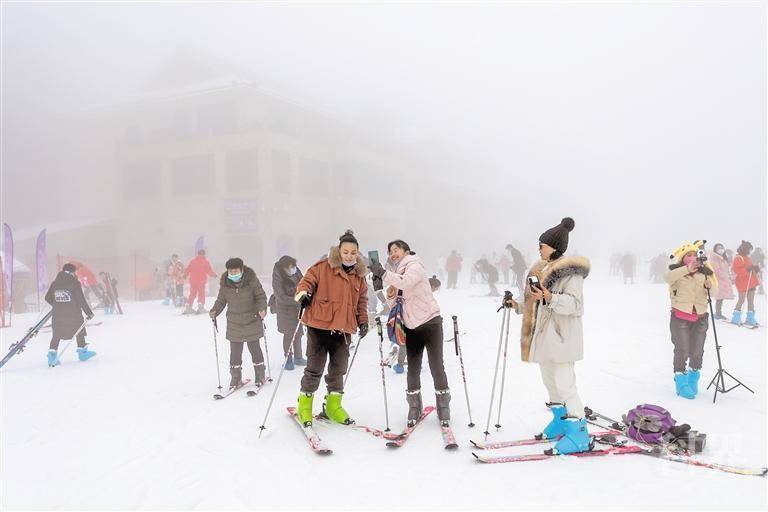 → 梅花山滑雪场游人如织。 (梅花山滑雪场供图)