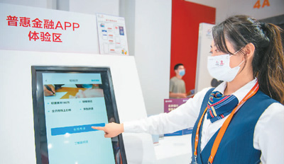 北京银行的一名工作人员正在介绍普惠金融APP的各项功能。