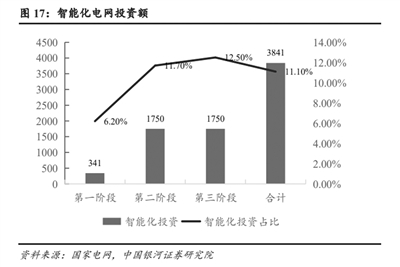 近年来中国智能化电网投资额及占比(亿元,%)数据来源:国家电网、中国银河证券研究院