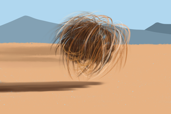 植物学家经过观察研究,发现这些滚动并不是“无效运动”,而是它们在借助风的力量传播种子。风滚草的果实底部藏着许多又小又轻的种子,在滚动过程中,它们不断与地面发生碰撞,使种子不断掉出来,落入泥土中。一棵风滚草就好比一架天然播种机,经过滚动,会让种子散布到广阔的草原上。通过风不断运动,将种子传播到草原的每一个角落,这就是风滚草的智慧吧。