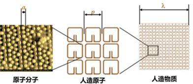 天然材料的微观结构是由原子或分子组成,而电磁超材料是由周期排布的人工原子或分子组成,这里的人工原子或分子就是人工设计的微结构,通过不断优化和改进微结构,可以使超材料在宏观上表现出不同的奇异电磁现象,并应用于不同的领域。正是由于其丰富的电磁特性,在不同的场合电磁超材料也被称为人工电磁材料或媒质、左手材料、光子晶体、超表面、超构材料等。