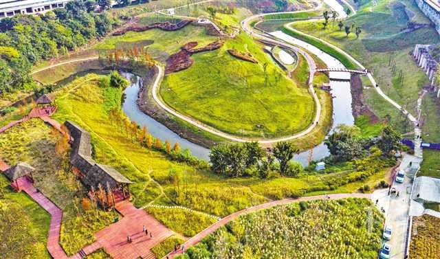 12月1日,大渡口区跳磴河“清水绿岸”治理提升工程一期项目现场,依坡而建的登山路径、沿河道的彩色健身步道、郁郁葱葱的绿色植被、优美惬意的环境吸引了不少市民休闲玩耍。