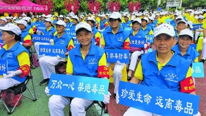 世纪城明珠助老社的队员参加禁毒宣传活动。