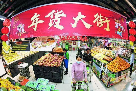 新年临近,南明区各大商场、超市进入年货购销旺季,新年饰品、腊肉、水果等年货商品琳琅满目。图为顾客在南明区一大型超市“年货大街”选购年货。 通讯员 赵松 摄