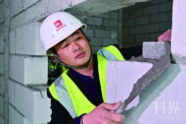细心的高海建,一边给瓦工师傅帮衬,一边琢磨他们怎么砌墙。就这样,高海建仅用2个月时间就学会本领当上了瓦工。