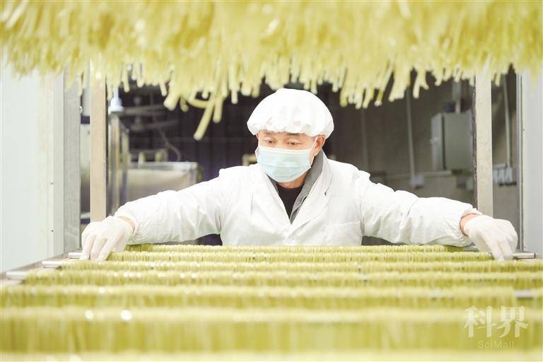 2021年12月31日,在岑巩县食品工业园区,工人正在晾晒思州米粉。