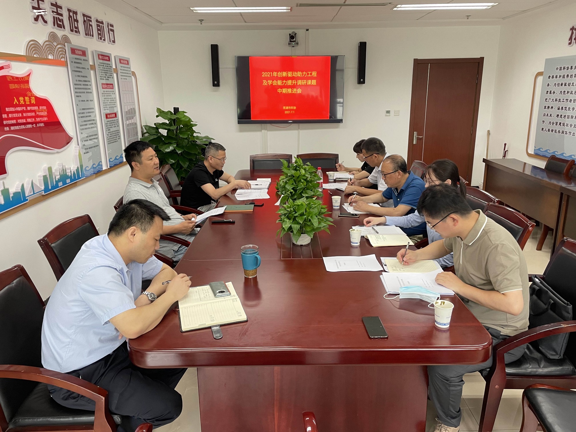 7月1日上午,市科协召开“2021年创新驱动助力工程及学会能力提升课题”中期推进会,市科协党组成员、副主席刘丙友主持召开,中共芜湖市委党校、安徽师范大学、安徽工程大学、芜湖职业技术学院、芜湖中医院、芜湖科力机器人产业服务中心等承接单位课题负责人参加会议。