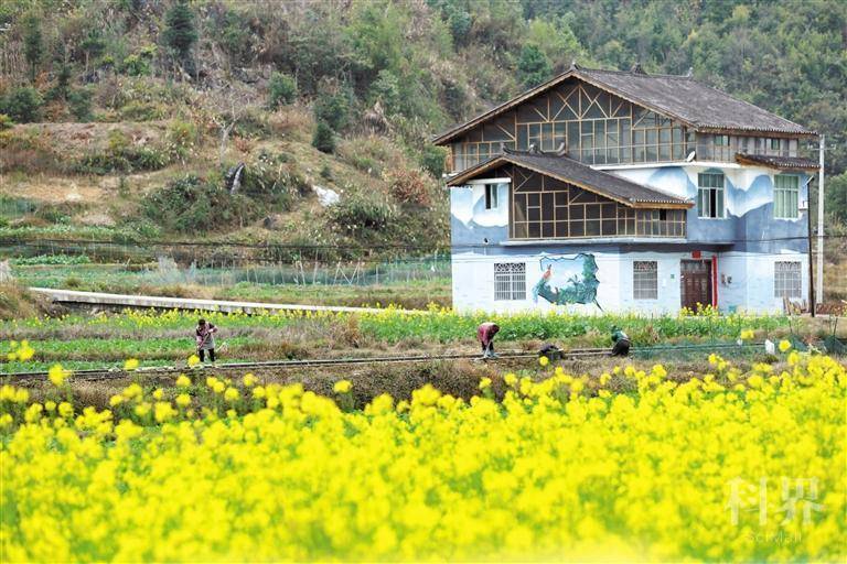 图为1月5日的洪江村,油菜花与面貌一新的民居相映成趣。