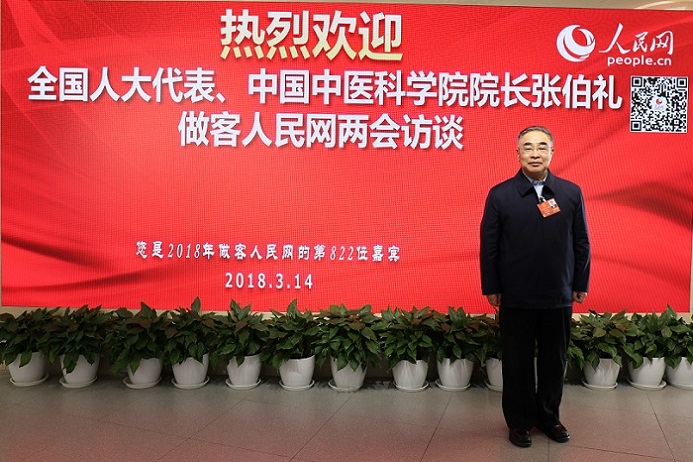 全国人大代表张伯礼做客人民网两会访谈(人民网摄)