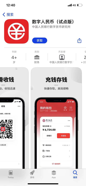数字人民币(试点版)APP已上架各大应用商店。来源:苹果应用商店