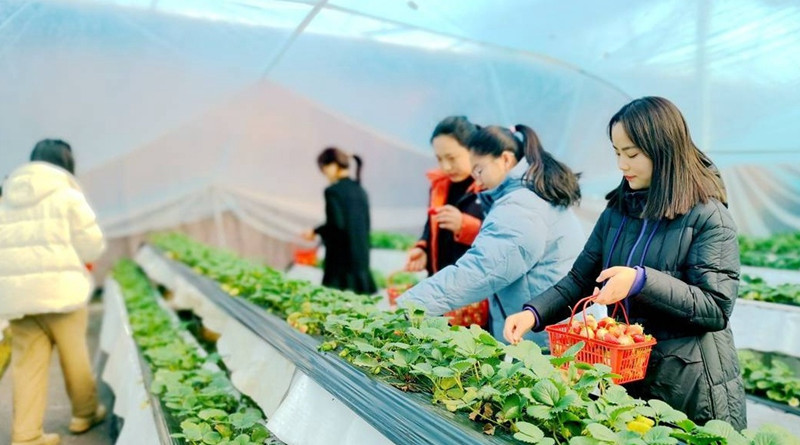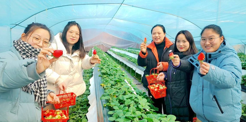 走进徐州小湖村草莓采摘区,只见一颗颗鲜红透亮的草莓“住”在“空中楼阁”上,采摘区内实现了全方位的路面硬化,干净舒心的环境,成为不少年轻人争相打卡的“网红目的地”。