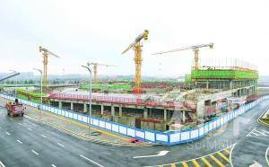贵安高铁综合交通枢纽公路客运站及物业综合开发工程建设项目施工现场(1月4日摄)。