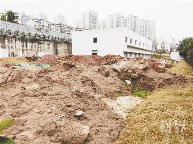 二○二一年十二月二十四日,重庆日报记者发现有建筑垃圾堆放于渝都大道与内环快速中间的绿化带上。