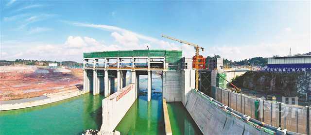 2021年12月13日,合川区钱塘镇米口村,工人对嘉陵江利泽航运水利枢纽工程船闸进行清淤和闸门调试收尾工作,为即将通航做准备。特约摄影 钟志兵/视觉重庆