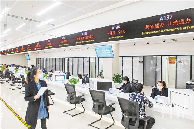 2021年11月17日,两江新区(自贸试验区)政务大厅,在四川省成都市武侯区开办企业的重庆人谭海威正在“川渝通办”窗口办理业务。记者 张锦辉 摄/视觉重庆