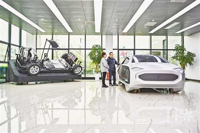 2021年10月20日,川渝高竹新区,四川瑞创汽车科技有限公司,参观者正在了解概念汽车。首席记者 龙帆 摄/视觉重庆