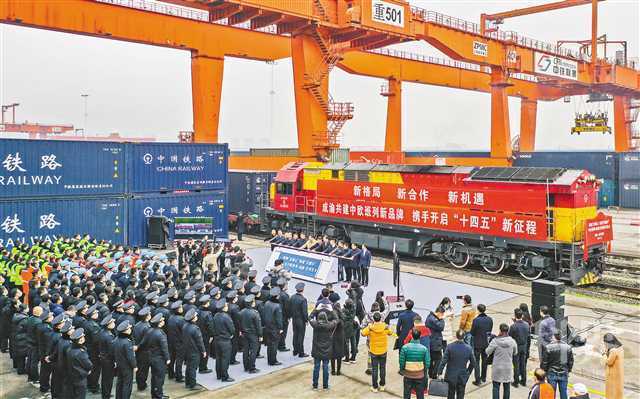 2021年1月1日,重庆团结村中心站,重庆、成都两地同时发出2021年中欧班列(成渝)号第一趟列车。记者 龙帆 摄/视觉重庆