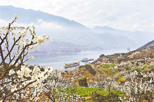 每年春天,在素有“花果之乡”的巫山县曲尺乡,长江两岸成片的李花盛开,分外美丽。(本报资料图片)特约摄影 王忠虎\视觉重庆