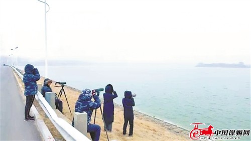 徐州野鸟会成员在吕梁湖观测拍摄中华秋沙鸭。