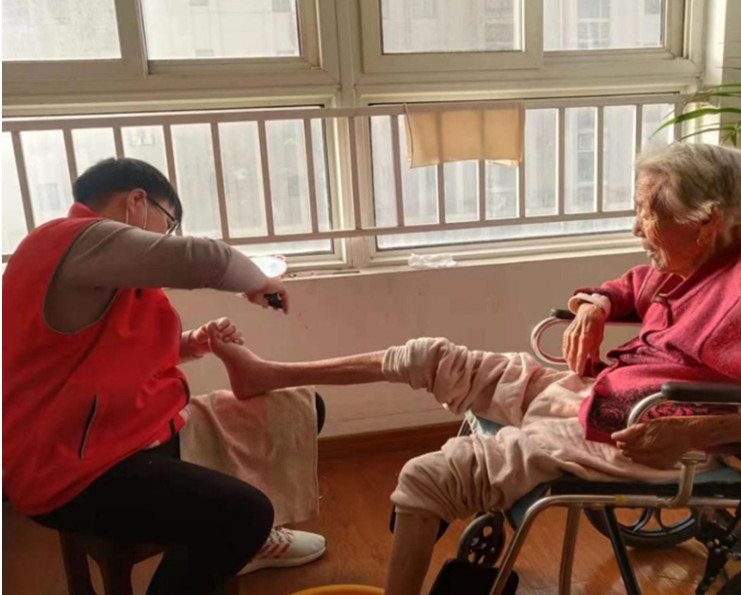 徐州泉山区积极推动社区医疗卫生资源与社区养老服务平台深度融合,让基层医疗卫生机构与嵌入式养老机构、日间照料中心、居家养老服务中心建立紧密的医养结合关系。在站点内设立的全科医生工作室中配备血压计、血糖仪等常用检测设备,可为辖区老年人提供健康检查、指导、管理等健康养老服务。在泉山区和平街道民康社区居家养老服务中心,78岁的焦大爷一边享受免费的按摩服务,一边开心地和老伙伴们聊着天。在这间230平方米的专门为老年人打造的休闲养生空间里,还有五六位满头银发的老人。他们中有的躺在床上做红外线治疗,有的靠在沙发上进行腰部按摩,还有的在专业人员指导下做中风后的康复训练。