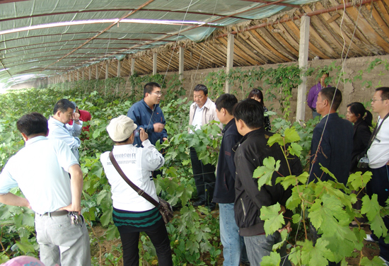 通过开展“高效、节能日光温室的设计与建造”、“设施葡萄的品种选择”、“设施葡萄的高标准建园”、“设施葡萄的高光效省力化整形修剪”、“设施葡萄高效肥水利用”、“设施葡萄的育壮促花”、“设施葡萄的花果管理”、“设施葡萄的环境调控”和“设施葡萄的连年丰产”等科技推广工作,及时将最新设施葡萄科研成果推广应用到生产一线,累计培训人员2000多人次,建立10处示范基地,有力提高了技术人员和职工的设施葡萄生产能力和技术水平,促进新疆地区设施葡萄产业的发展,农民增产增效取得良好效果。