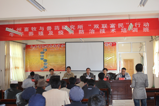 2012年以来,研究所又积极参与甘肃省委的“联村联户、为民富民”行动。充分发挥研究所科技和人才优势,组织专家多次赴甘肃省甘南藏族自治州临潭县新城镇,深入田间地头现场示范讲解,开展牛羊养殖及防疫技术等培训,力求通过帮扶推动经济发展,增加农民收入。组织有关专家举办了“双联富民”行动牛羊养殖及疫病防治技术培训班,开展了牛羊养殖技术和疫病防治技术专题讲座,培训学员近200人,分别向新城镇及研究所的三个联系村赠送了肉牛、肉羊养殖技术和牛羊疫病防治技术光盘及400多册科技图书资料。