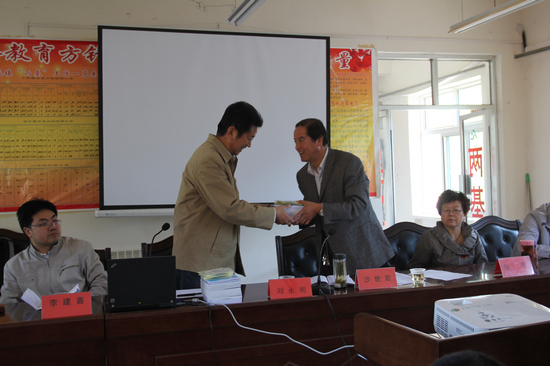 刘永明书记(左二)代表研究所向联系点赠送科技书籍