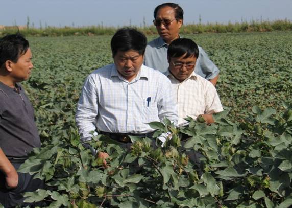 棉花所所长喻树迅(左二)院士考察新疆棉花长势