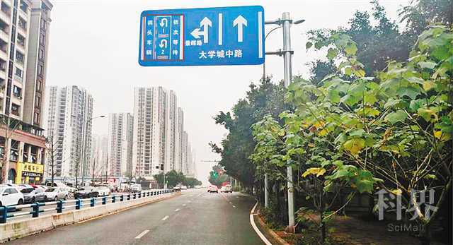 在大学城盛德路景辉路路口,已标注出串联掉头标志。(沙坪坝区公安分局供图)