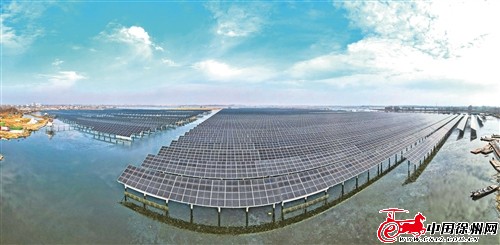 隆冬时节,在江苏徐州沛县龙东煤矿采煤沉陷区5847亩水面上,487968块单晶硅光伏组件在阳光下熠熠生辉,源源不断地把太阳能转化为清洁电能输送到电网……中煤集团上海能源公司工作人员报告:“电度表已显示发电量!”人们用热烈的掌声庆祝这个“渔光互补”光伏示范项目并网发电成功。