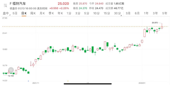 自2020年末新任CEO上任并进行大刀阔斧的改革以来,公司股价累计上涨了220%以上,即比当时不足7美元的股价翻了三倍。去年11月8日,福特股价自20年来首次突破20美元。