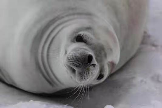 图为段煦拍摄“蠢萌蠢萌”的豹型海豹
