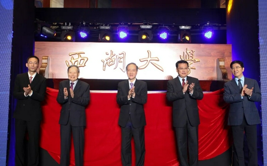 我清楚地记得成立大会那一天,96岁的杨先生早早就来到会场,他身着深蓝色条纹西装,里面穿着浅蓝色衬衫搭配一条红色领带,整个人神采奕奕。仪式上,我与杨先生、韩启德老师、当时的袁家军省长和代表教育部出席大会的杜玉波副部长一起揭牌。但万万没有想到,就在揭牌后,杨先生不小心被脚下的红绸布一下绊倒在了主席台上!当时惊出我一身冷汗,赶忙上前把他扶起,慢慢步行到座位上,他执意坚持到仪式结束才回房间休息。下午,翁帆告诉我杨先生无大碍,休养恢复即可。我惴惴不安一整晚,没想到,第二天的顾问委员会会议,他照常全程出席,跟大家一起讨论问题,并对学校学术评价标准提出了中肯的建议,让我非常感动。