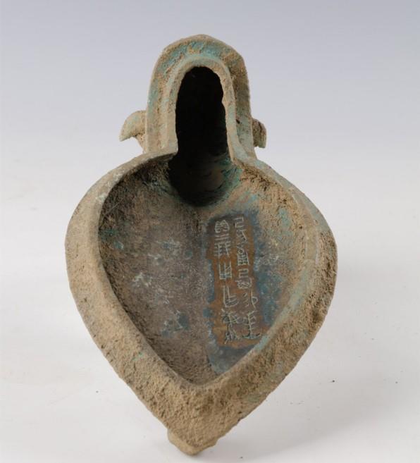 邵家棚遗址出土的青铜觥盖,内壁上有铭文12字(资料照片)。(安阳市文物考古研究所供图)