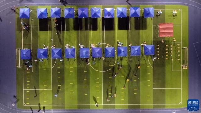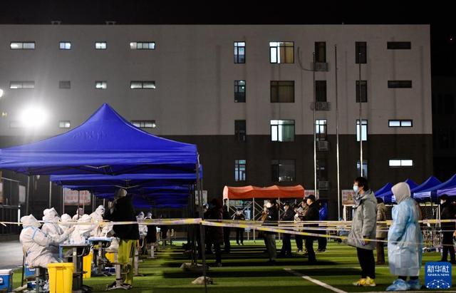 1月9日晚,天津市南开区鼓楼街道中营小学核酸检测点正在检测。新华社记者 赵子硕 摄
