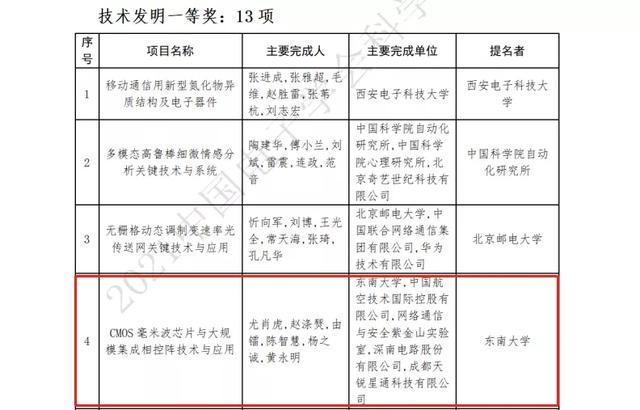 其中,由江苏紫金山实验室刘韵洁院士领衔的未来网络创新团队获得创新团队奖,尤肖虎教授领衔完成的“CMOS毫米波芯片与大规模集成相控阵技术与应用”获得技术发明一等奖。