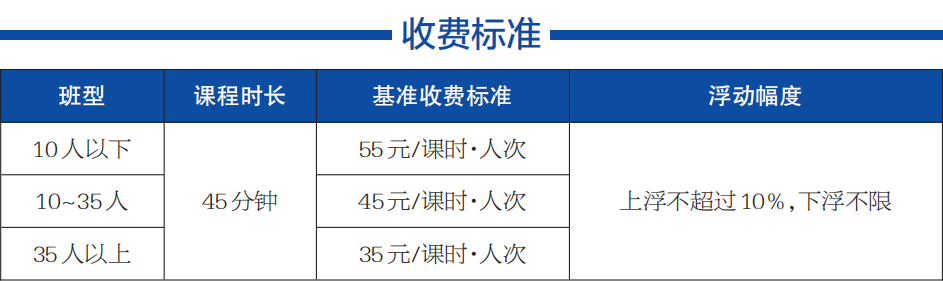 10人以下一课时收费55元/人次