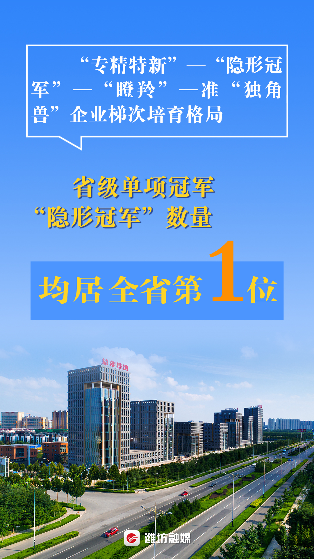 “专精特新”——“隐形冠军”——“瞪羚”——准“独角兽”企业梯次培育格局,省级单项冠军和“隐形冠军”数量均居全省第一,潍坊成为国内知名的单项冠军城市。