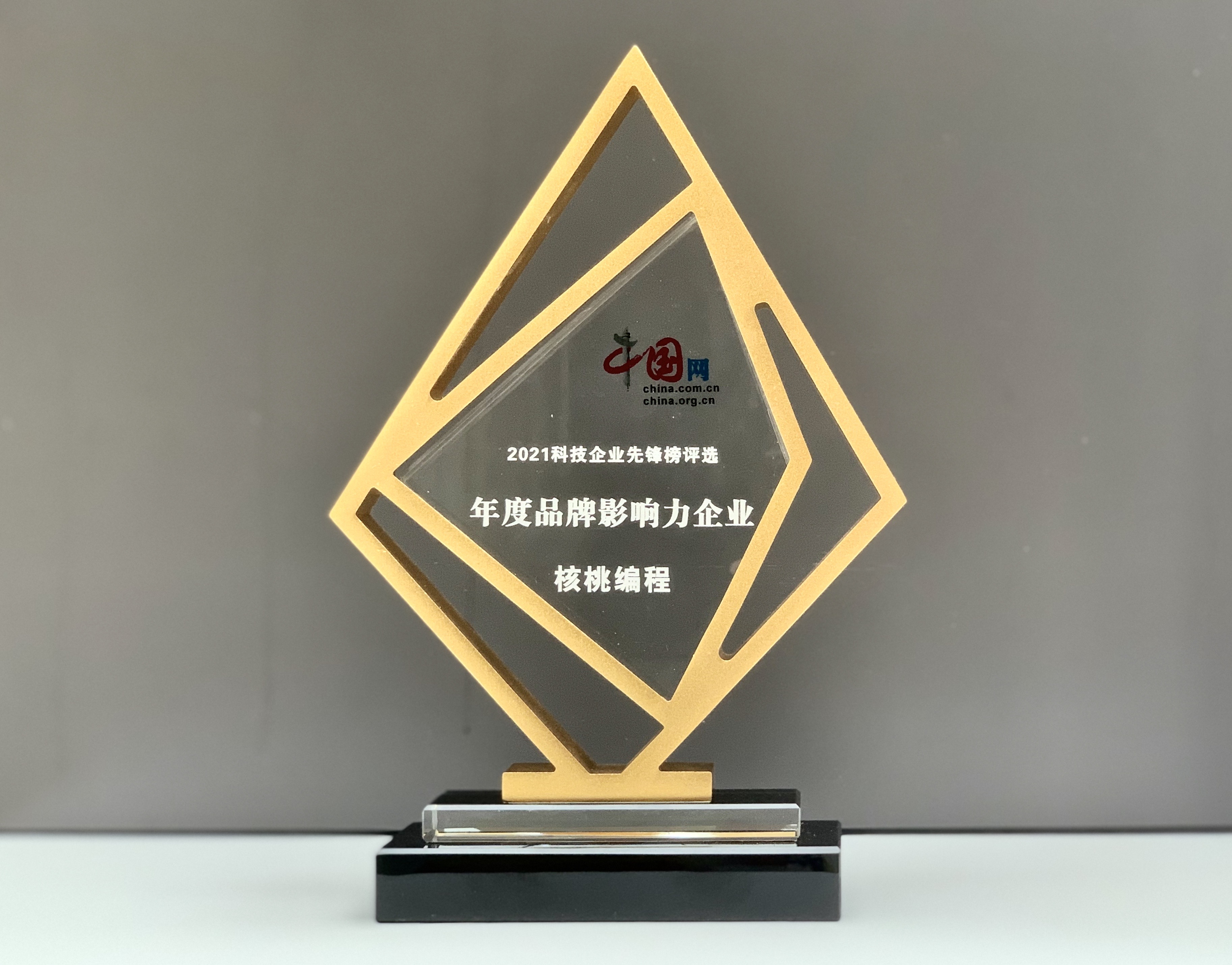 (图:核桃编程荣膺“年度品牌影响力企业”殊荣奖牌)