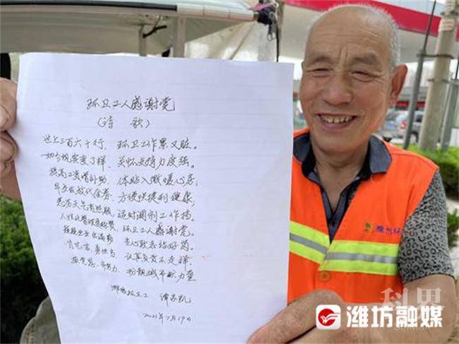 环卫工人谭家凯写的一首《环卫工人感谢党》的诗歌在网上被热传。