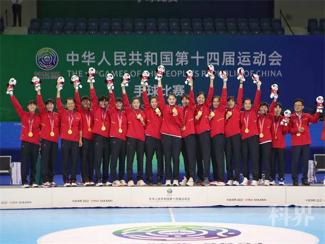 全运会上,省、市、校联办的江苏女子手球队夺得第十四届全运会女子手球冠军