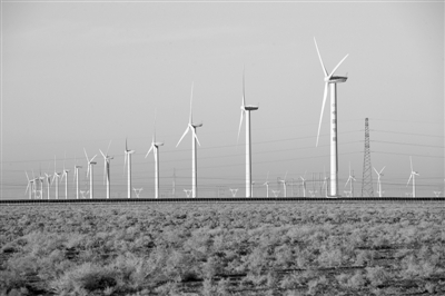 中节能(甘肃)风力发电有限公司玉门昌马风电场的风机新华社记者 范培珅摄