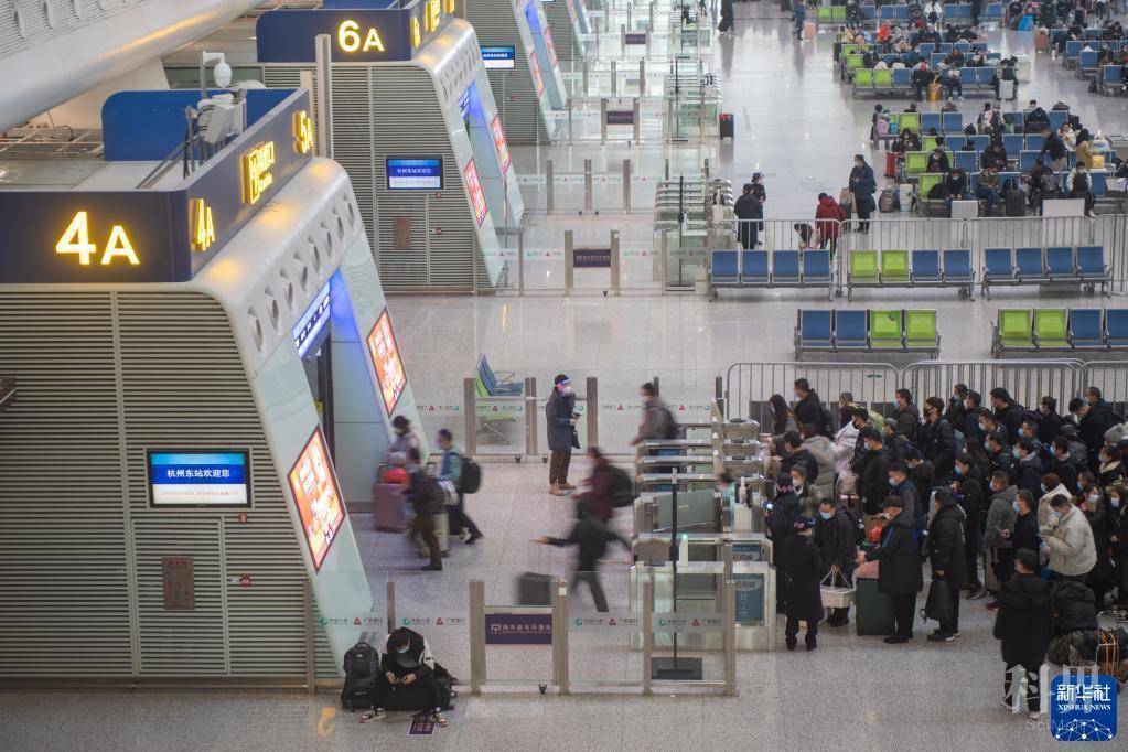 1月17日,杭州东站候车旅客在检票进站。新华社记者 江汉 摄