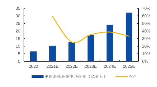 市场空间方面,有产业机构预测,2021年的中国高精地图市场规模将同比增长近30%,达到10亿美元。